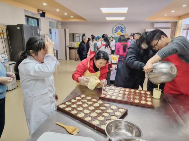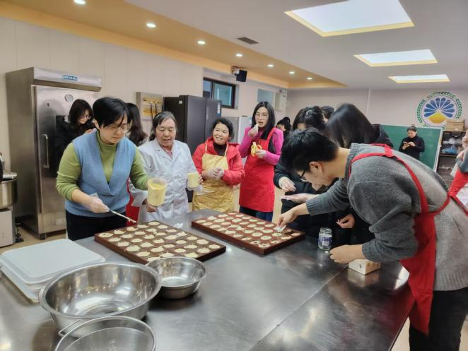 在活动过程中,刘伟主席着重强调,工会应当切实发挥校园文化建设的桥梁与纽带作用,积极推动师生共同参与校园文化活动,携手实现共同成长。此次元旦烘焙活动,不仅是一场美食盛宴,更是一次心灵的深入交流与碰撞。教师们在制作过程中相互学习、相互帮助,积极分享烘焙的心得与技巧,进一步增进了彼此之间的友谊与默契程度。活动结束后,大家围坐在一起,品尝着自己亲手制作的烘焙作品,脸上洋溢着满满的满足与幸福。这场活动,不仅让教师们深切感受到了烘焙的乐趣与魅力,更有效激发了大家对校园文化的热爱之情与创新创造活力,为新的一年开启了绚丽美好的崭新篇章。