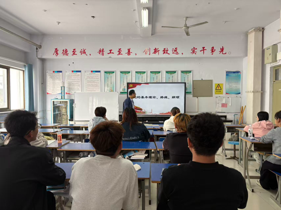 党课上,张水生老师围绕党的基本理论、路线、纲领进行讲解,结合青年实际分享交流,引导入党积极分子深化理论理解、明确时代使命,推动理论学习入脑入心。