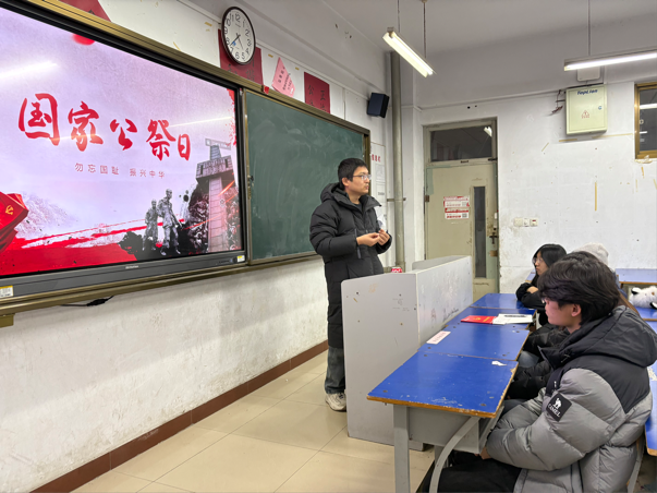 团课中,老师借助历史影像与文字记载,再现那段山河破碎、同胞蒙难的沉痛往事,深入讲述国家公祭日设立的意义。老师强调,要始终铭记历史教训,保持清醒警醒,把对祖国的热爱转化为踏实奋斗的实际行动。课堂上,同学们凝神聆听、在肃穆的氛围中共同接受了一次深刻的精神洗礼。