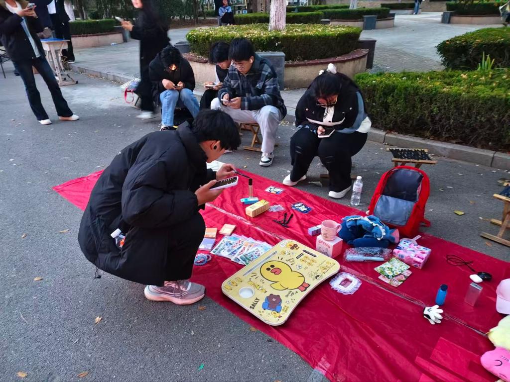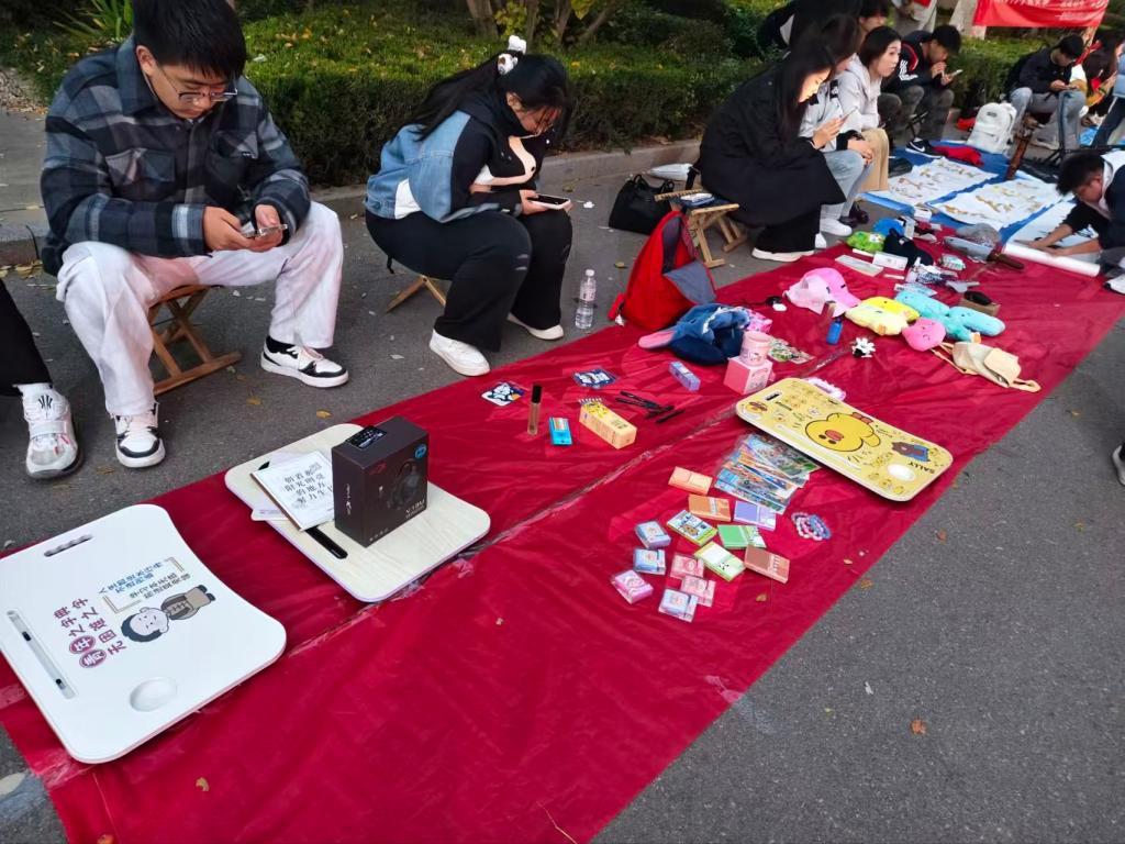 活动现场,多个摊位整齐排列,“摊主”们将闲置物品一一陈列,品类丰富又贴近生活。柔软的毛绒玩偶、九成新的抱枕、床上桌等生活用品备受青睐,造型可爱的钥匙扣、手工挂件等小物件引得同学们驻足挑选;粮食工程专业相关的行业科普书等每样物品都标注着亲民价格。同学们俯身挑选心仪好物,与摊主友好议价,还能以物易物,现场氛围轻松又热烈。